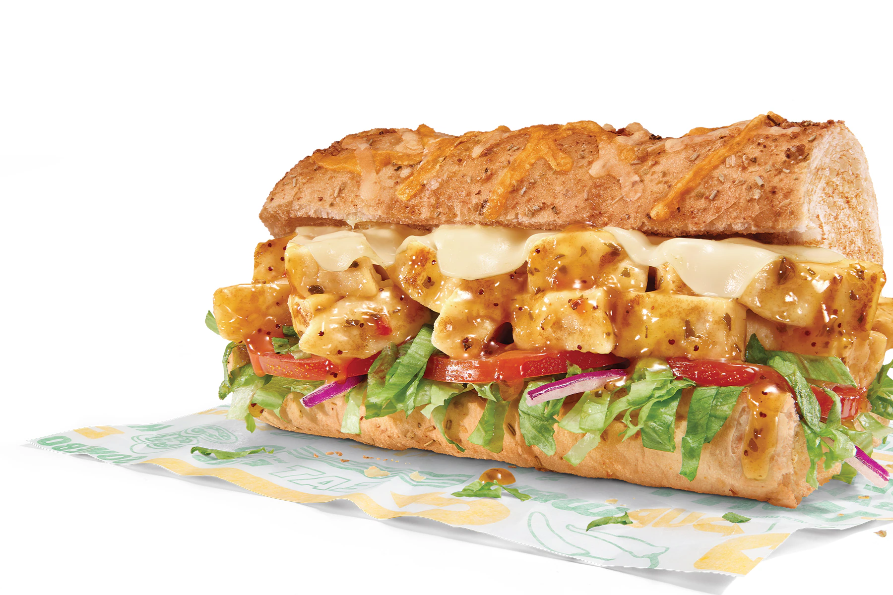 Tender Rotisserie-style chicken, cheddar cheese sauce, peppers, jalapenos, Creamy Sriracha, SubKrunch & onions served on our freshly baked Artisan bread.