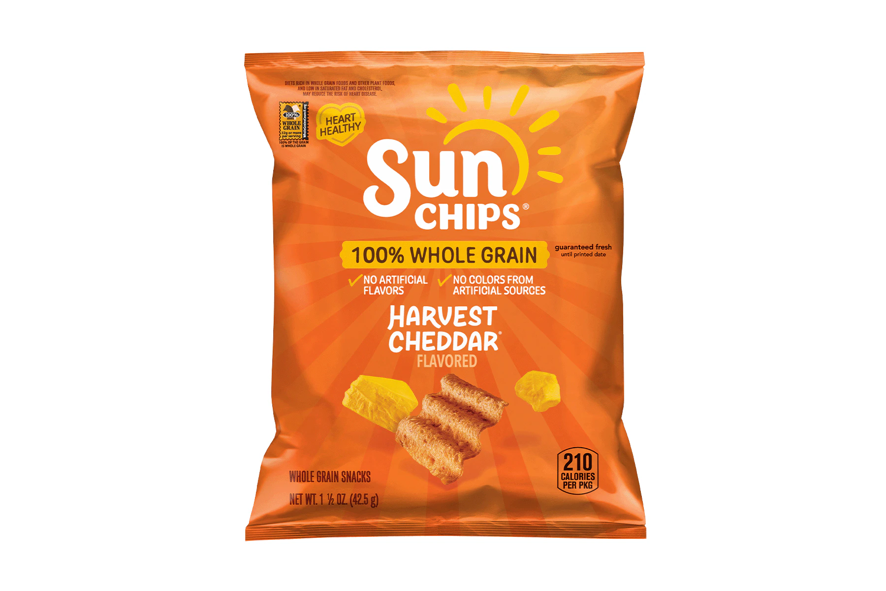 The flavor of real cheddar cheese is layered onto a delicious whole grain chip to create this tasty combination.